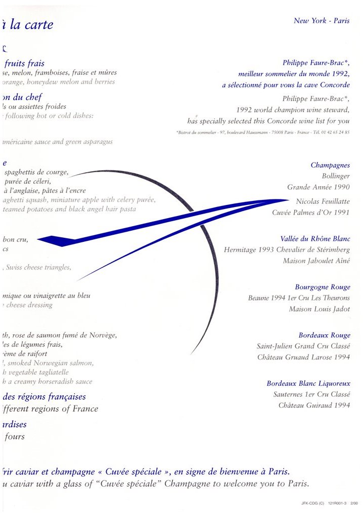 Menu signé par : Alain PICCININI, Officier Mécanicien Navigant Pierrette CATHALA, Hôtesse